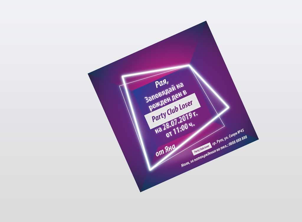 Покана за детски рожден ден „Неоново парти“