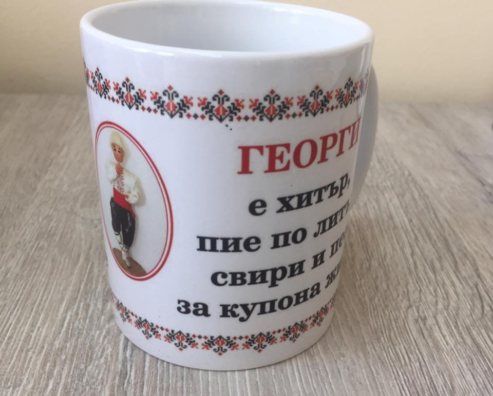 Бяла чаша „Георги e хитър…“