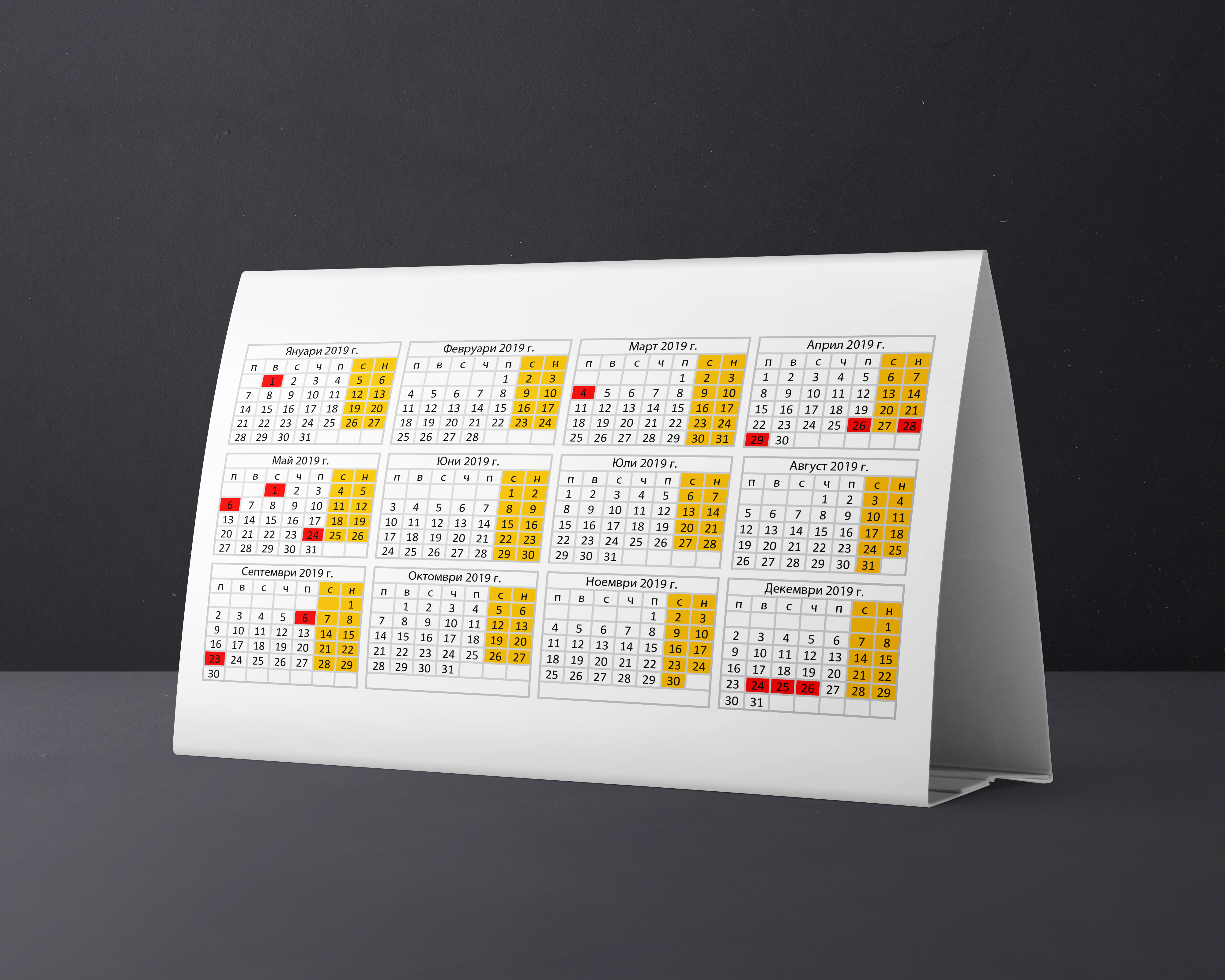 Настолен календар, отпечатан върху луксозен картон Галакси кварц silver