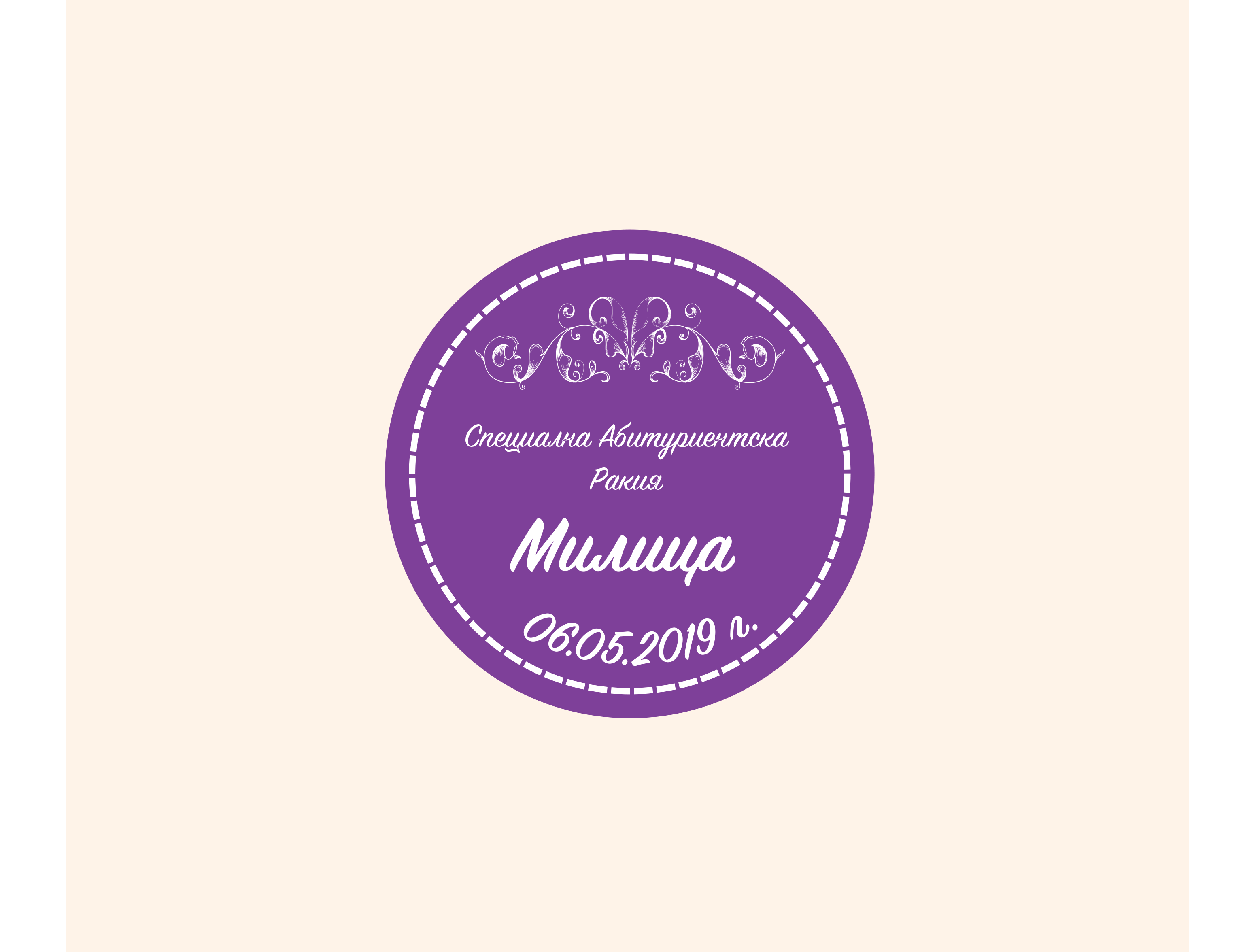 Кръгъл етикет за бутилка за абитуриентски бал „Purple Dream“с диаметър 8 см