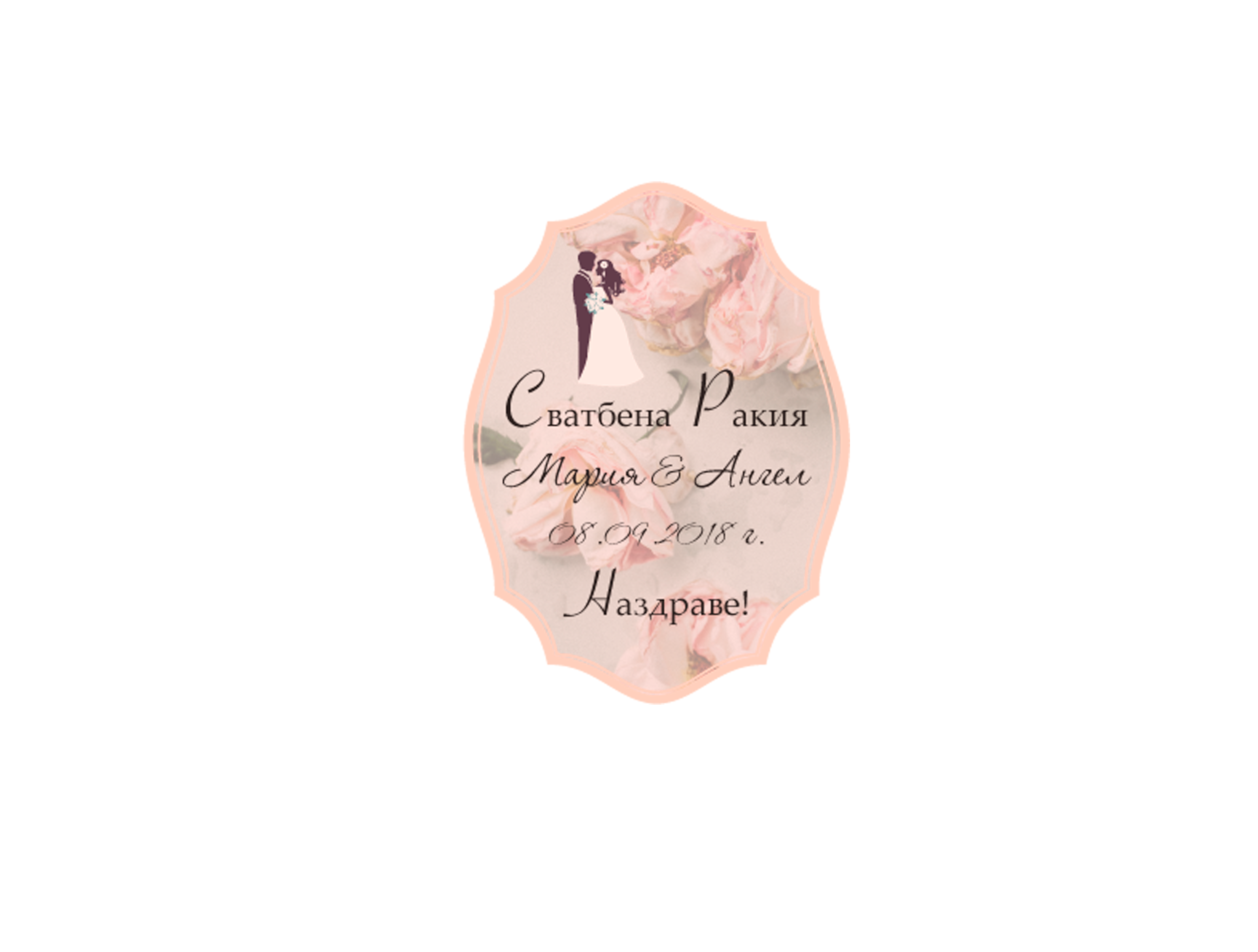 Етикет за вино, ракия „Vivid Rose“ с флорални акценти с размери 12х8,5 см