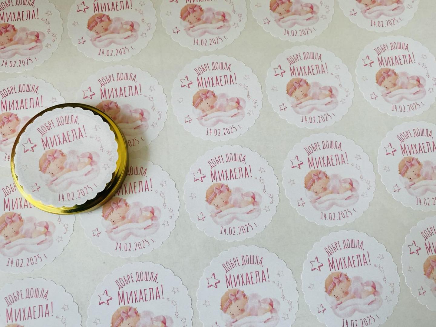 Мини етикет за бурканчета с мед „Baby girl“ с диаметър 5 см