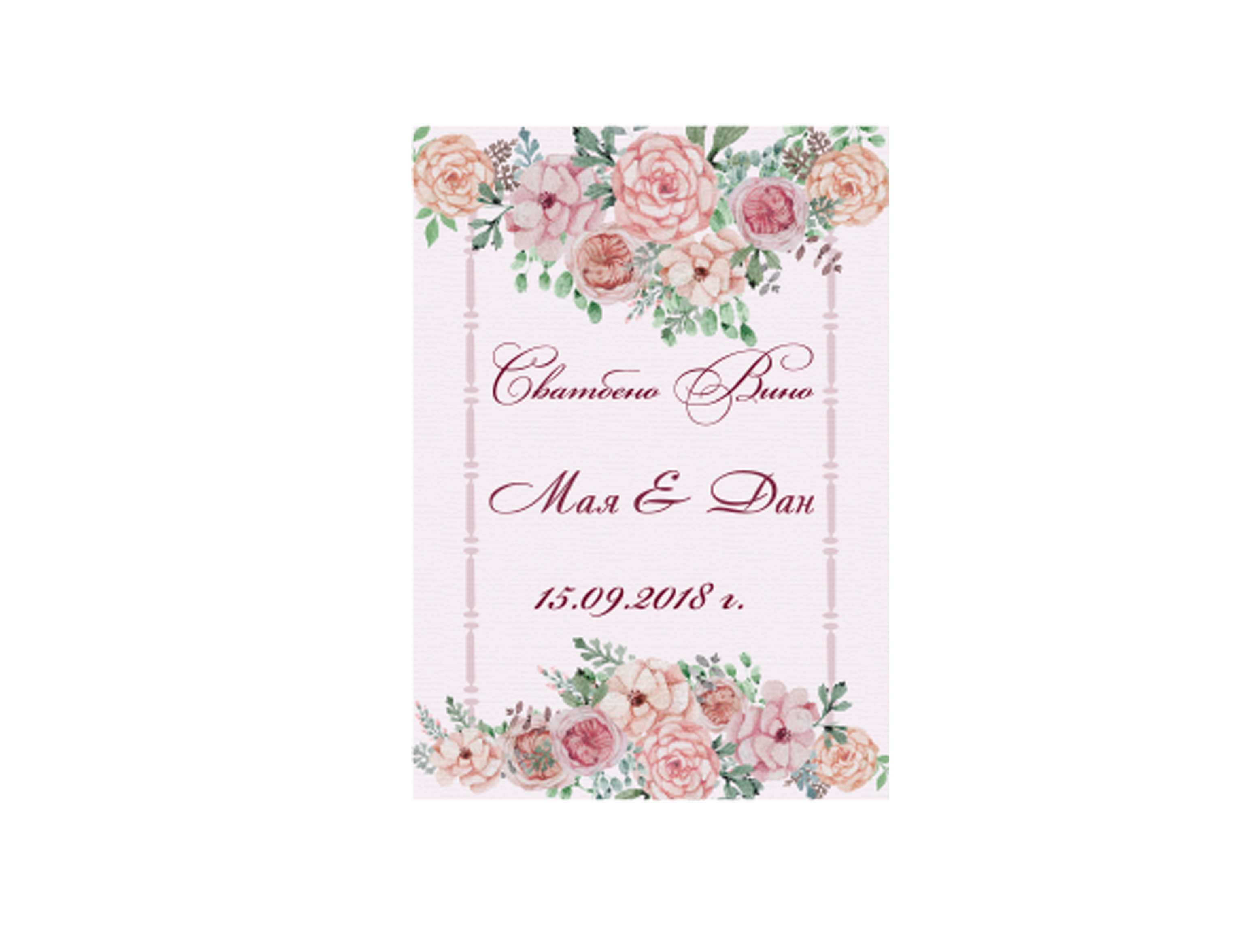 Етикет за бутилка „Peony“ с размери 11х8.5 см