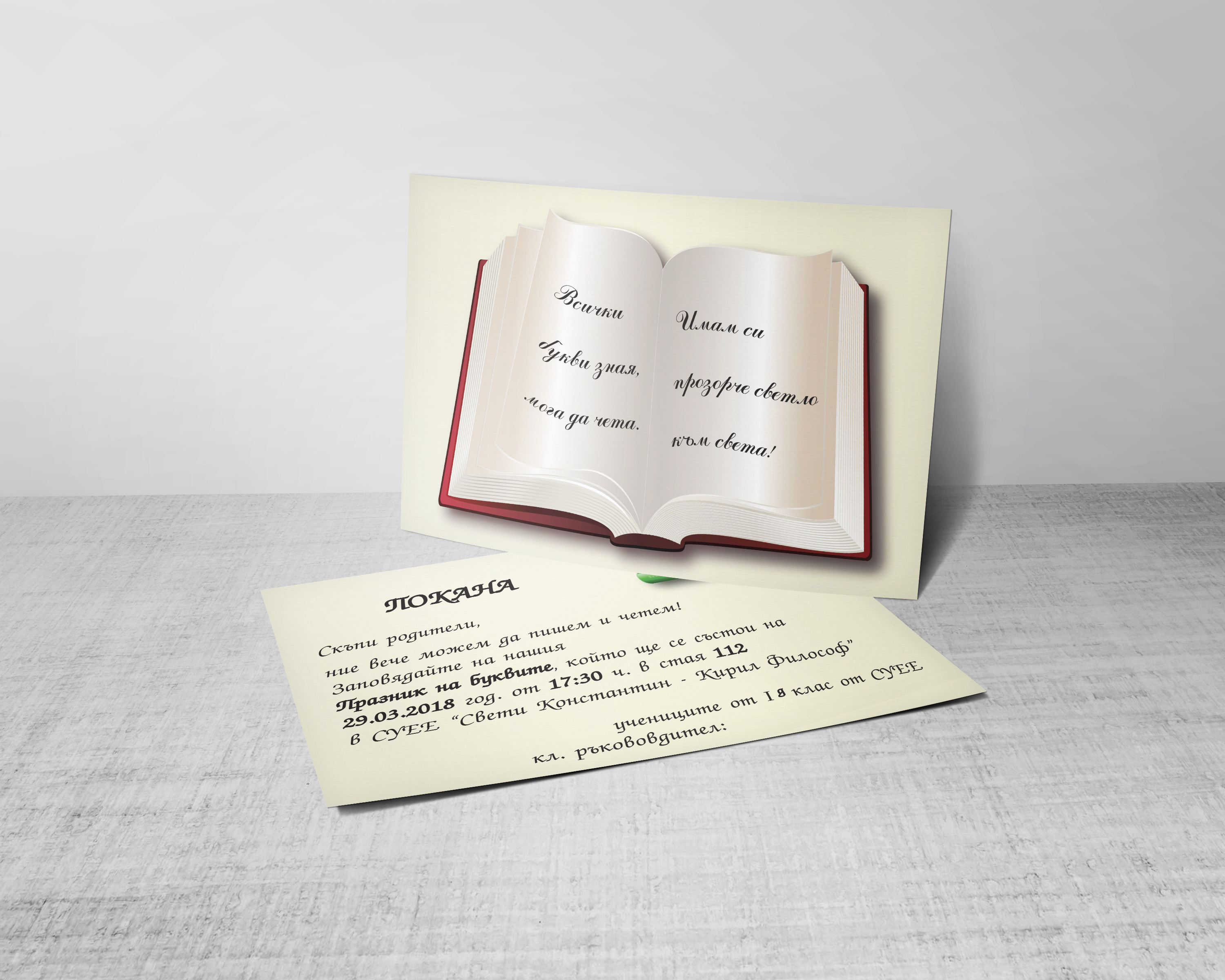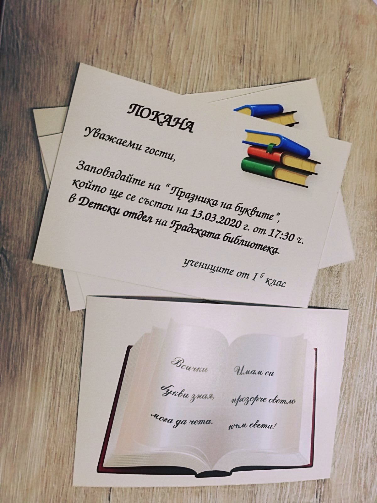 Покана „Празник на буквите“ с размери 10х15 см