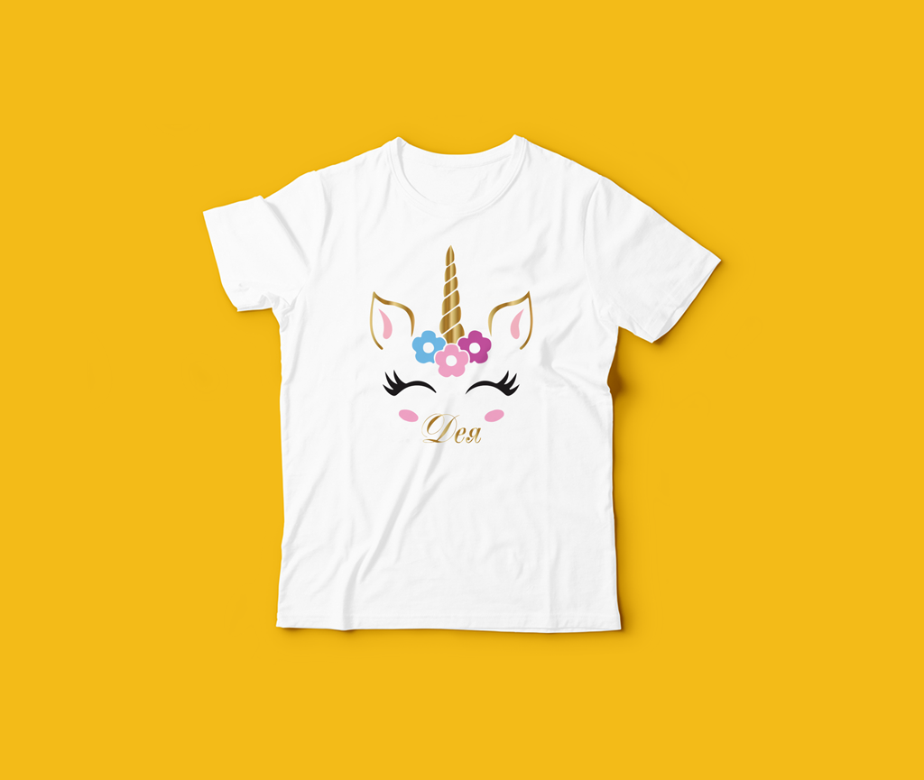 Тениска Еднорог с име, надписът е изработен с термофолио
